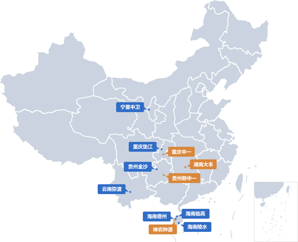 公司在湖南、重慶、貴州、海南儋州擁有4家核心子公司,業(yè)務(wù)覆蓋西南、華中、華東、華南等國(guó)內(nèi)主要農(nóng)作物種植區(qū)域,并拓展至東南亞、南亞、非洲等境外地區(qū),建有專業(yè)化、區(qū)域化、精準(zhǔn)化的育種、制種和營(yíng)銷團(tuán)隊(duì)。